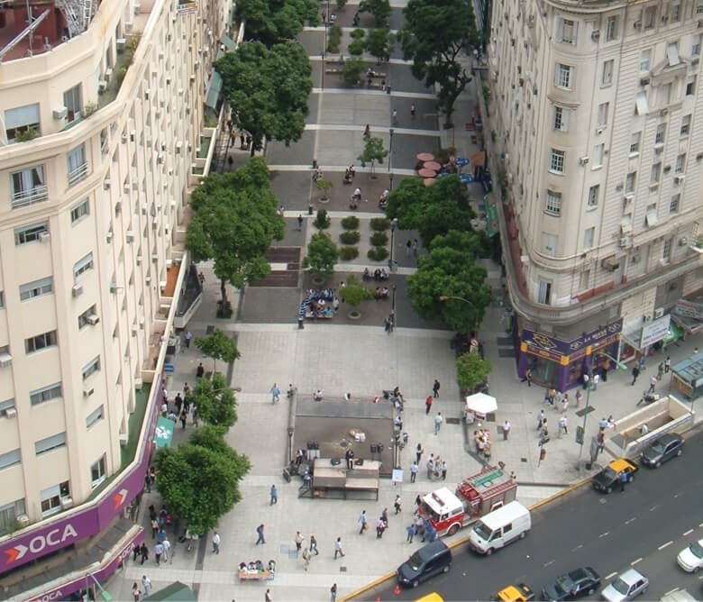 Primer proyecto de Calle transformada en espacio público, área caminable de convivencia con el automóvil. Integra espacialmente el Obelisco y la Plaza de la República, con la Plaza de los Tribunales