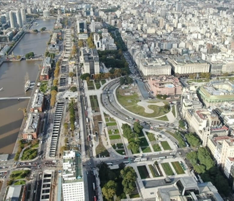 Ubicado entre las avenidas Belgrano, Corrientes, Leandro N. Alem y Huergo, la obra forma parte de una reconfiguración integral de la zona del Bajo porteño. Un nuevo parque a escala metropolitana de más de 10 ha. de uso público. Contempló el ordenamiento vehicular y del transporte público generando conectividad y caminabilidad, jerarquizando un área histórica de la ciudad